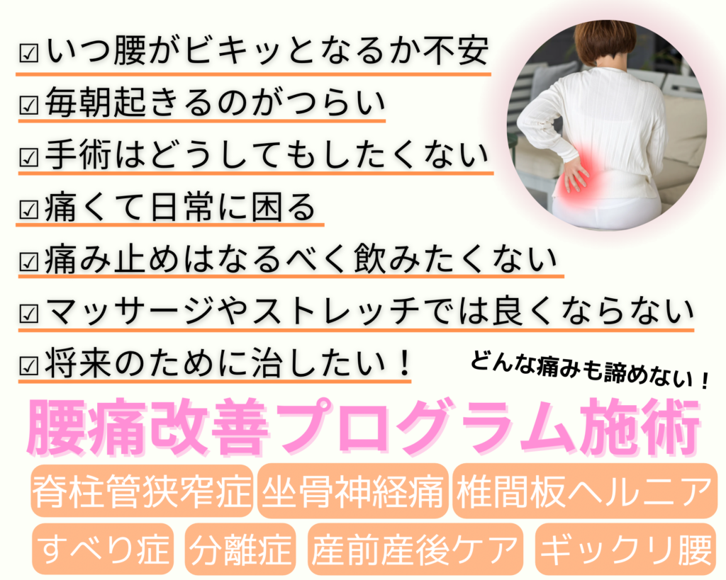 長年の腰痛、繰り返すぎっくり腰などの痛みにお悩みの方は、